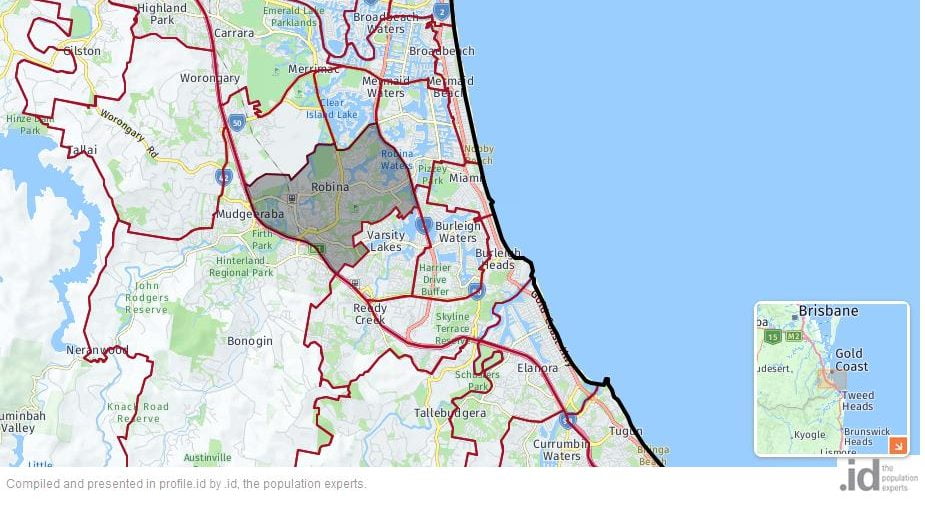 Robina is a popular local residential area on the Gold Coast which features a major shopping centre, local service industry, intercity train station, and sports stadium.