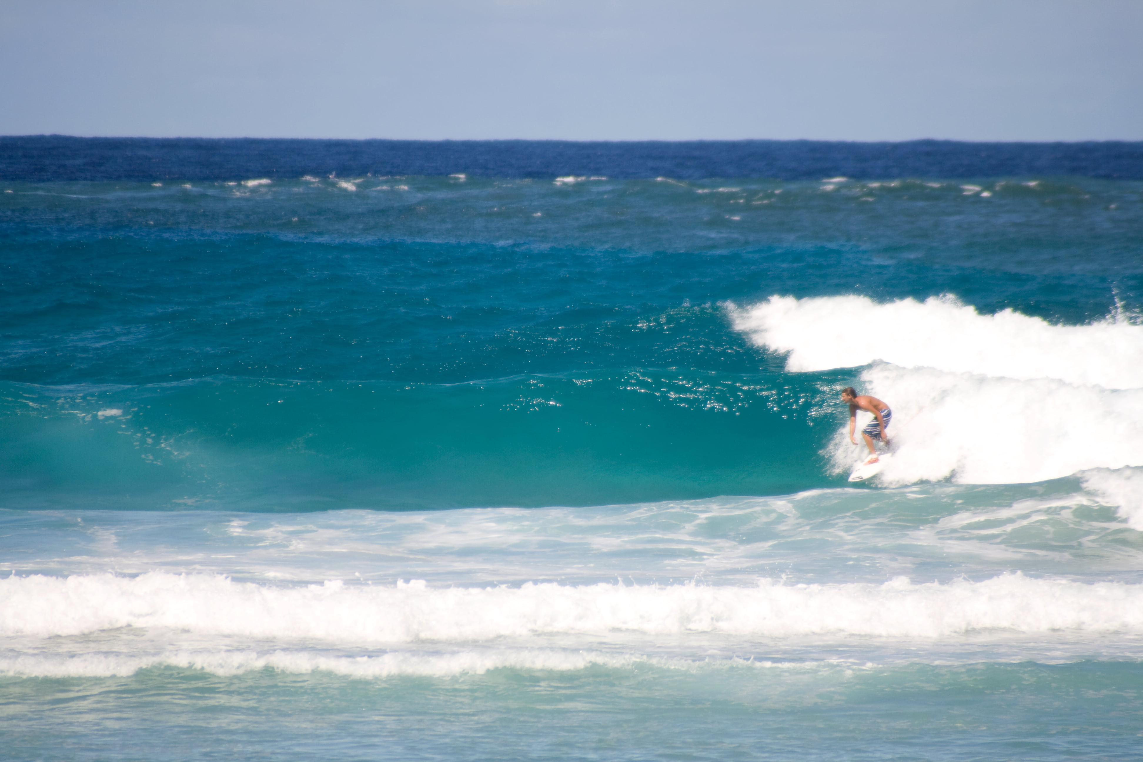 Surfer catches a wave