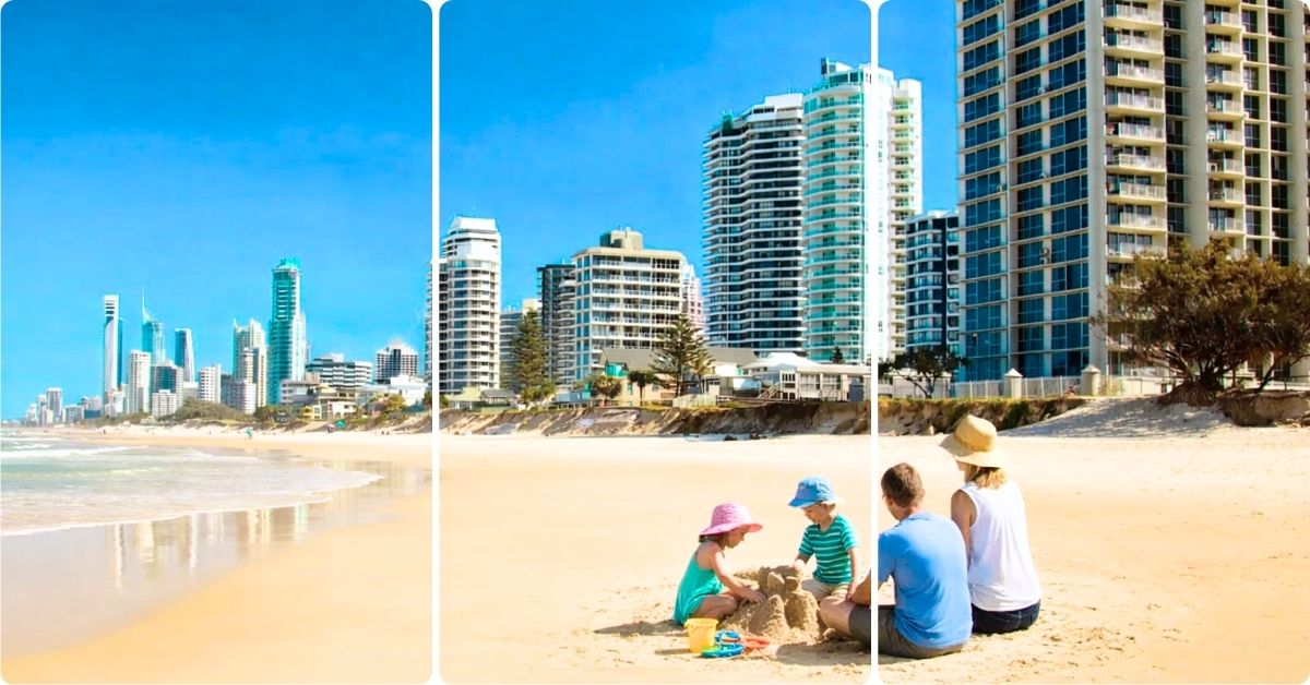 By public transport, the G:Link tram stops at Main Beach station, a short walk to Tedder Avenue and the beach. On foot from the northern end of Surfers Paradise it’s about 25 to 30 minutes.