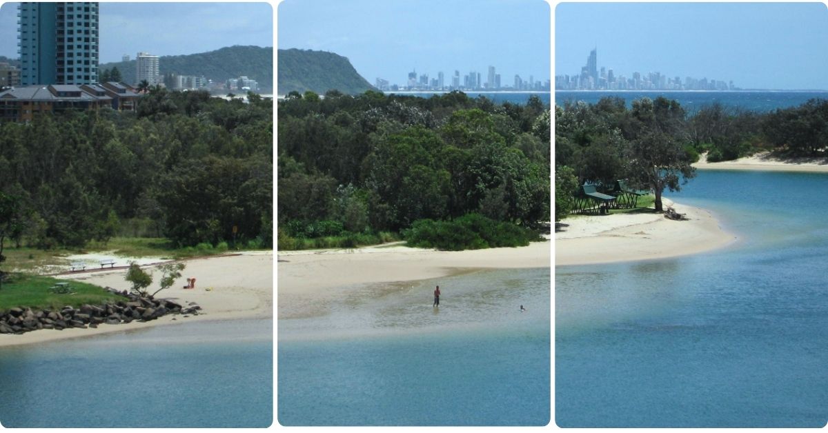 This is an estuary beach, not an ocean beach. That’s the whole point. The creek creates a sheltered zone where 1 to 2 metre water depth is standard, currents are manageable in the main swimming area, and the absence of ocean swell means children can stand up, play, and learn to swim without being knocked over every 30 seconds. Compare it to Palm Beach just north (ocean surf, shore break, different skill level required) or Currumbin Beach to the south (open ocean), and Tallebudgera is the obvious choice if calm water is your priority.