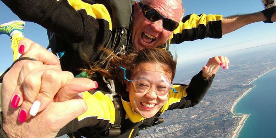 The beauty of tandem skydiving is that it requires none of the usual intensive skydiving training, but offers 100 per cent of the mind-blowing, 200km/hr open-air thrill. The feeling is often described as floating on a cushion of air as you hurtle 7,500 feet through the sky in 45 seconds.