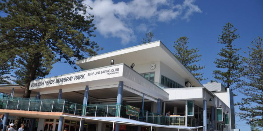 The Burleigh Heads Mowbray Park Surf Club is located at the base of the picturesque Burleigh Heads National Park offering a sports bar, gaming area, and restaurant that’s open for breakfast, lunch, and dinner.