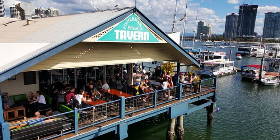 Fishermans Wharf Tavern located at Mariners Cove Main Beach is a local favorite for a quiet drink overlooking the Broadwater and casual waterfront dining. Their restaurant menu is contemporary Australian featuring pub classics including pasta, steak, and seafood.