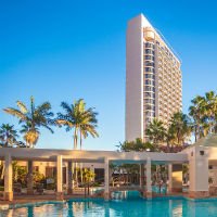 Crowne Plaza features spacious guest rooms, with most rooms offering ocean views and large marble bathrooms with separate bath and shower, furnished balcony, mini-bar, work desk, cable TV and air-conditioning. Facilities include a tennis court, laundry, spa, 2 bars and located on floor 26 is the award-winning Four Winds 360 restaurant.