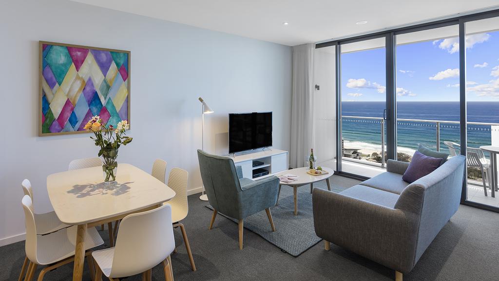 The sophisticated and spacious Ultra Broadbeach apartments are self-contained with a fully equipped kitchen. Each apartment offers a shuttered, east-facing balcony leading from open-plan living and dining areas. Facilities include a pool, sauna, fitness centre, and hot tub. Latest rates and offers